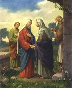 Po tym zdarzeniu Maryja wybrała się w góry do Elżbiety. Kiedy ją pozdrowiła, poruszyło się dziecko w łonie Elżbiety, a Duch Święty napełnił ją. „Wydała ona okrzyk i powiedziała: »Błogosławiona jesteś między niewiastami i błogosławiony jest owoc Twojego łona. A skądże mi to że matka mojego Pana przychodzi do mnie? (…) Błogosławiona jesteś, któraś uwierzyła, że spełnią się słowa, powiedziane Ci od Pana.«” (Łk 1, 4243, 45). „Wtedy Maryja rzekła: »Wielbi dusza moja Pana, i raduje się duch mój w Bogu, moim zbawcy. Bo wejrzał na uniżenie Służebnicy swojej. Oto bowiem błogosławić mnie będą odtąd wszystkie pokolenia, gdyż wielkie rzeczy uczynił mi Wszechmocny. Święte jest Jego imię a swoje miłosierdzie na pokolenia i pokolenia [zachowuje] dla tych, co się Go boją. On przejawia moc ramienia swego, rozprasza [ludzi] pyszniących się zamysłami serc swoich. Strąca władców z tronu, a wywyższa pokornych. Głodnych nasyca dobrami, a bogatych z niczym odprawia. Ujął się za sługą swoim, Izraelem, pomny na miłosierdzie swoje jak przyobiecał naszym ojcom na rzecz Abrahama i jego potomstwa na wieki.«” (Łk 1, 4655). Maryja była u Elżbiety około trzech miesięcy, potem wróciła do domu.
