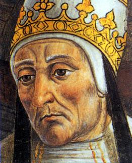 W ikonografii przedstawiany jest w ornacie papieskim, zwykle w tiarze; jego atrybutami są księga albo podwójna laska z krzyżem.