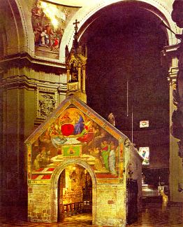 W 1209 lub 1210 roku św. Franciszek wraz z towarzyszami udał się do Rzymu. Papież Innocenty III przyjął ich i zatwierdził, pierwszą prostą regułę franciszkańską (która jednak później zaginęła). Polecił też Franciszkowi, aby przyjął święcenia diakonatu, by mógł tym lepiej wypełniać swoją misję. Jego towarzyszom zaś pozwolił nosić tonsurę znak przynależności do stanu duchownego. Według podania Innocenty III miał mieć sen proroczy, w którym widział św. Franciszka i jego uczniów, jak podtrzymywali swoimi ramionami chylący się do upadku Kościół Boży. Bracia wrócili do Asyżu, gdzie zamieszkali w Rivotorto w tak zwanym Sacro Tugurio czyli świętej ruderze. Była to kapliczka, mająca po obu stronach dwa maleńkie pomieszczenia, tak maleńkie, że Franciszek napisał na murach i belkach imiona braci, wyznaczając im w ten sposób miejsca do spania. Można w nich było jedynie siedzieć lub leżeć. Ta święta ruina dzisiaj znajduje się wewnątrz neogotyckiego kościoła św. Marii w Rivotorto.
