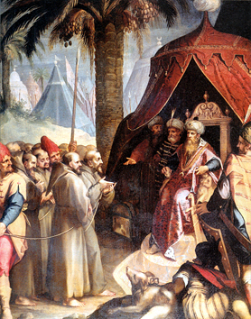 Wreszcie Franciszek urzeczywistnił swoje marzenie. W 1219 roku odpłynął z Ancony do Acri i dalej do Damietty. Damietta egipska forteca, była oblegana przez krzyżowców już od roku. Jednak muzułmanie pod wodzą dwóch braci: sułtana Egiptu i sułtana Damaszku, dzielnie odpierali ataki. Franciszek głosił kazania krzyżowcom, ale nade wszystko pragnął stanąć przed sułtanem. I udało mu się to sułtan Malik el Kamil (lub wg innej pisowni Melek-el-Kamel) przyjął go na audiencji. Franciszek wygłosił płomienne przemówienie, ale jedyne, co udało mu się osiągnąć, to słowa: „Módl się za mnie, aby Bóg wyjawił mi religię, która jest Mu najmilsza”. Otrzymał też glejt, pozwalający mu swobodnie poruszać się po Ziemi Świętej. Niektórzy uważają, że Franciszek odniósł olbrzymi sukces, skoro nie został zabity przez muzułmanów za swoją chrześcijańską misję.