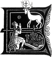 Pewnego dnia bowiem, podczas polowania, spotkał stado jeleni, a wśród nich ujrzał jednego, który był większy i piękniejszy od innych. Oddzielił się on od gromady innych i pobiegł w pustkę leśną. Placidus usilnie podążał za nim i próbował go schwytać, podczas gdy jego żołnierze zajęli się pozostałymi jeleniami. Otóż gdy tak z całych sił biegł za jeleniem, ten wreszcie wskoczył na wysoką skałę, a Placidus zbliżywszy się pilnie rozważał, w jaki sposób mógłby go schwytać. Wpatrując się jednak bez przerwy w jelenia, ujrzał pomiędzy jego rogami kształt krzyża świętego, który błyszczał jaśniej od słońca, i obraz Chrystusa, który przez usta jelenia, jak niegdyś do Balaama przez usta oślicy, tak przemówił do niego: Placydzie, dlaczego mnie prześladujesz? Oto ja z miłości do ciebie ukazałem ci się w tym zwierzęciu! Ja jestem Chrystus, którego ty nie znasz, lecz czcisz. Jałmużny twoje do mnie się wznoszą, z ich powodu przybyłem, bym przez tego jelenia, na którego ty polowałeś, ja teraz ciebie złowił. Inni jednak opowiadają, że sam obraz Chrystusa, który ukazał się pomiędzy rogami jelenia, wymówił te słowa. Placidus zaś słysząc je, ogarnięty wielką trwogą, spadł z konia na ziemię. Po upływie godziny wróciwszy do siebie podniósł się z ziemi i rzekł: Wyjaśnij mi bliżej, co mówisz, a uwierzę w Ciebie! Chrystus tedy rzekł: Placydzie, ja jestem Chrystus, który stworzył niebo i ziemię. Ja kazałem powstać światłu i oddzieliłem je od ciemności. Ja stworzyłem pory roku, dnie i lata, z prochu ziemskiego utworzyłem człowieka. Ja dla zbawienia rodu ludzkiego przyszedłem na świat w ludzkiej postaci, a ukrzyżowany i pogrzebany zmartwychwstałem trzeciego dnia. Usłyszawszy te słowa Placidus upadł znowu na ziemię i rzekł: Wierzę, Panie, że Ty stworzyłeś wszystko i nawracasz błądzących. Pan zaś rzekł doń: Jeśli wierzysz, idź do biskupa tego miasta i daj się ochrzcić. Placidus tedy zapytał: Panie, czy chcesz, abym oznajmił to mojej żonie i synom i aby oni również w Ciebie uwierzyli? A Pan odrzekł: Oznajmij im, aby i oni wraz z tobą zostali oczyszczeni. Sam przyjdź tu również jutro, a ja ukażę ci się znowu i objawię ci jaśniej to, co się stanie. Skoro Placidus wrócił do domu i w łożu oznajmił o tym żonie, ta zawołała : Panie mój, ja również widziałam Go ubiegłej nocy i mówił do mnie: Jutro ty, mąż twój i synowie przyjdziecie do mnie. Teraz już wiem, że to był Jezus Chrystus! Udali się więc o północy do biskupa rzymskiego, który z wielką radością ochrzcił ich i nazwał Placyda Eustachym, a żonę jego Teospitą, synowie zaś otrzymali imiona: Agapit i Teospit. Gdy nadszedł ranek, Eustachy wyruszył na polowanie jak poprzedniego dnia. Przybywszy w pobliże owego miejsca rozesłał swoich żołnierzy pod pozorem, że mają szukać tropów zwierząt, sam zaś stanął na dawnym miejscu. Ujrzawszy zaś to samo widzenie upadł na twarz i rzekł: Błagam Cię, Panie, objaw słudze Twemu to, co obiecałeś! Pan zaś rzekł: Szczęśliwy jesteś, Eustachy, że obmyłeś się w źródle mej łaski, ponieważ pokonałeś diabła, podeptałeś tego, który ciebie oszukiwał. Ale teraz okaże się wiara twoja: diabeł bowiem teraz zawziął się na ciebie za to, że go opuściłeś. Wiele musisz znieść, aby otrzymać koronę zwycięstwa. Wiele musisz przecierpieć, utracisz czcze dostojeństwa tego świata, lecz za to wywyższony zostaniesz w duchowym bogactwie. Nie trać jednak otuchy, nie spoglądaj wstecz na twoją minioną chwałę, ponieważ trzeba, abyś w tych ciężkich próbach okazał się drugim Jobem. Gdy zaś będziesz poniżony, wtedy ja przyjdę do ciebie i przywrócę ci dawną chwałę. Powiedz więc, czy teraz chcesz podjąć tę próbę, czy na końcu twego życia? Eustachy zaś odrzekł: Panie, jeśli trzeba, aby się tak stało, to ześlij na nas teraz te próby, użycz nam jednak cnoty cierpliwości! A Pan odrzekł mu: Bądź mężny, bo łaska moja będzie strzegła dusz waszych. Po czym Pan wstąpił do nieba, a Eustachy powrócił do domu i opowiedział wszystko swojej żonie. Po kilku dniach zaraza poczęła się szerzyć pomiędzy niewolnikami i niewolnicami Eustachego i zabiła wreszcie wszystkich. W jakiś czas potem wszystkie jego konie i trzody nagle wyginęły. Złoczyńcy zaś, widząc nieszczęście, w którym się znalazł Eustachy, napadli nocą na jego dom i zabrali wszystko, co tylko znaleźli. Obrabowali cały dom ze złota, srebra i wszelkiego dobytku, Eustachy zaś nago uciekł nocą wraz z żoną i synami, ale i za to dziękował Bogu. Wstydząc się swej nędzy udali się do Egiptu, a cała ich majętność została zupełnie zniszczona przez rabunki złych ludzi. Tymczasem król i cały senat boleli bardzo nad stratą tak doskonałego wodza, a to tym bardziej, że nie mogli w żaden sposób natrafić na ślad po nim. Tymczasem Eustachy i jego rodzina w swojej wędrówce dotarli do morza, a spotkawszy okręt wypłynęli w nim na morze. Właściciel okrętu ujrzawszy żonę Eustachego, która była bardzo piękna, zapragnął ją mieć dla siebie. Gdy więc przepłynęli morze, zażądał od nich zapłaty. Ponieważ zaś nie mieli pieniędzy, oświadczył, że jako rękojmia zapłaty żona Eustachego zostanie na okręcie, ponieważ chciał zabrać ją ze sobą. Eustachy usłyszawszy to żadną miarą nie chciał się zgodzić i długo się opierał, ale właściciel okrętu skinął na marynarzy, aby go wrzucili do morza, chcąc w ten sposób posiąść jego żonę. Gdy to Eustachy zrozumiał, z wielkim smutkiem zostawił żonę, wzdychając wziął swych dwóch synów i odchodząc rzekł: Biada mnie i wam, bo obcy mąż zabrał waszą matkę! Przyszedł później nad pewną rzekę, lecz nie miał odwagi przejść przez nią z dwoma chłopcami, ponieważ była bardzo wezbrana. Pozostawił więc jednego s